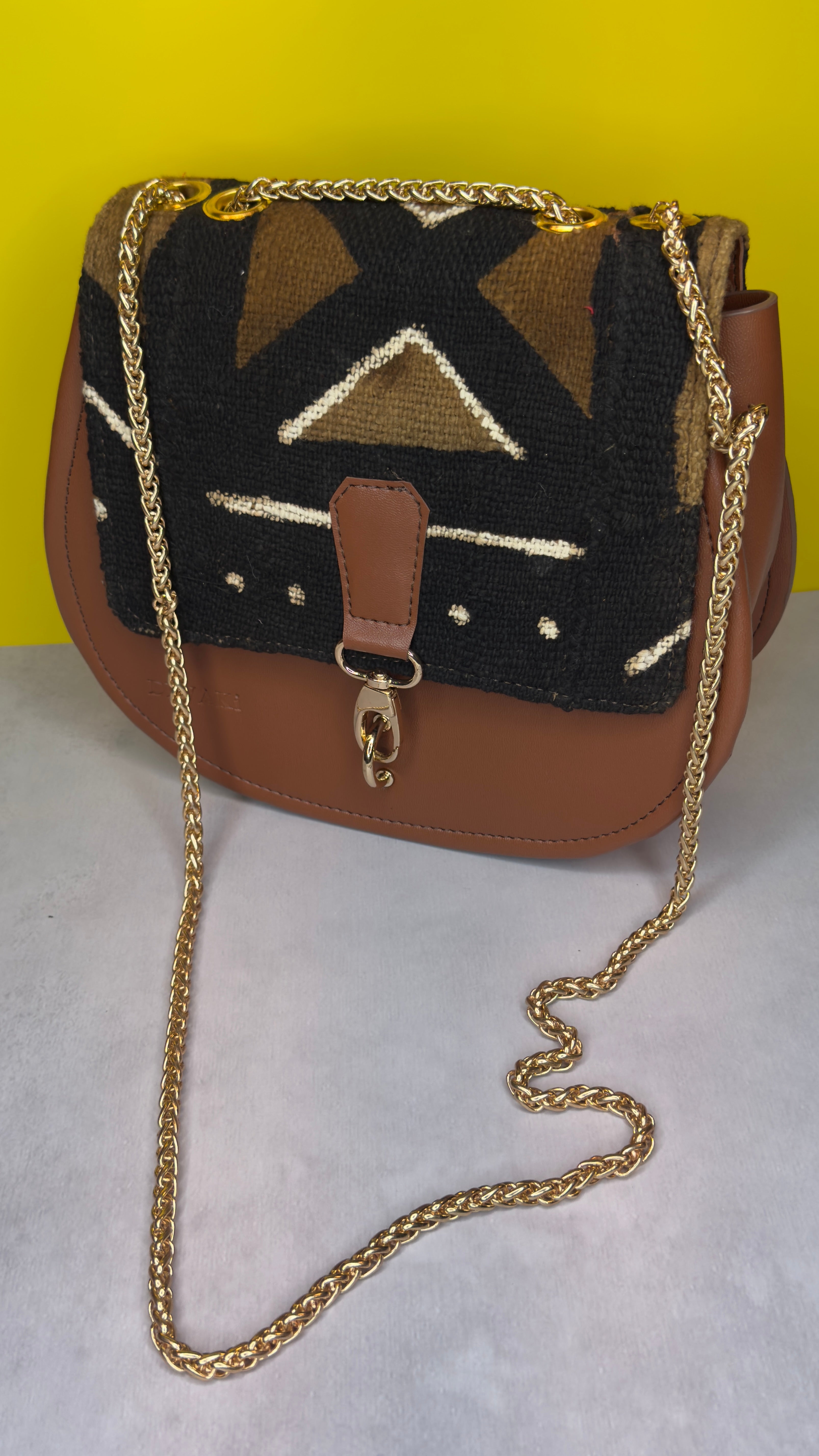 Hand-crafted with premium leather and authentic Bogolan-inspired mudcloth fabric, this bag celebrates centuries of African artistry while offering the refinement of contemporary design.